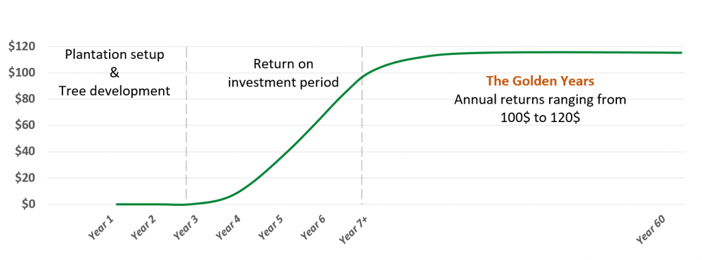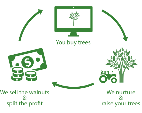 Great things come to those who wait! All future profits are split equally 50 – 50 between the walnut fund and you. Best of all, we only begin to take our share of profits after your initial investment has been returned.